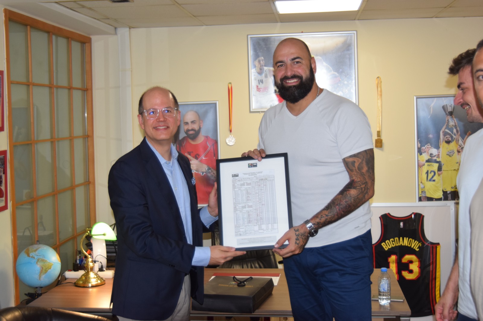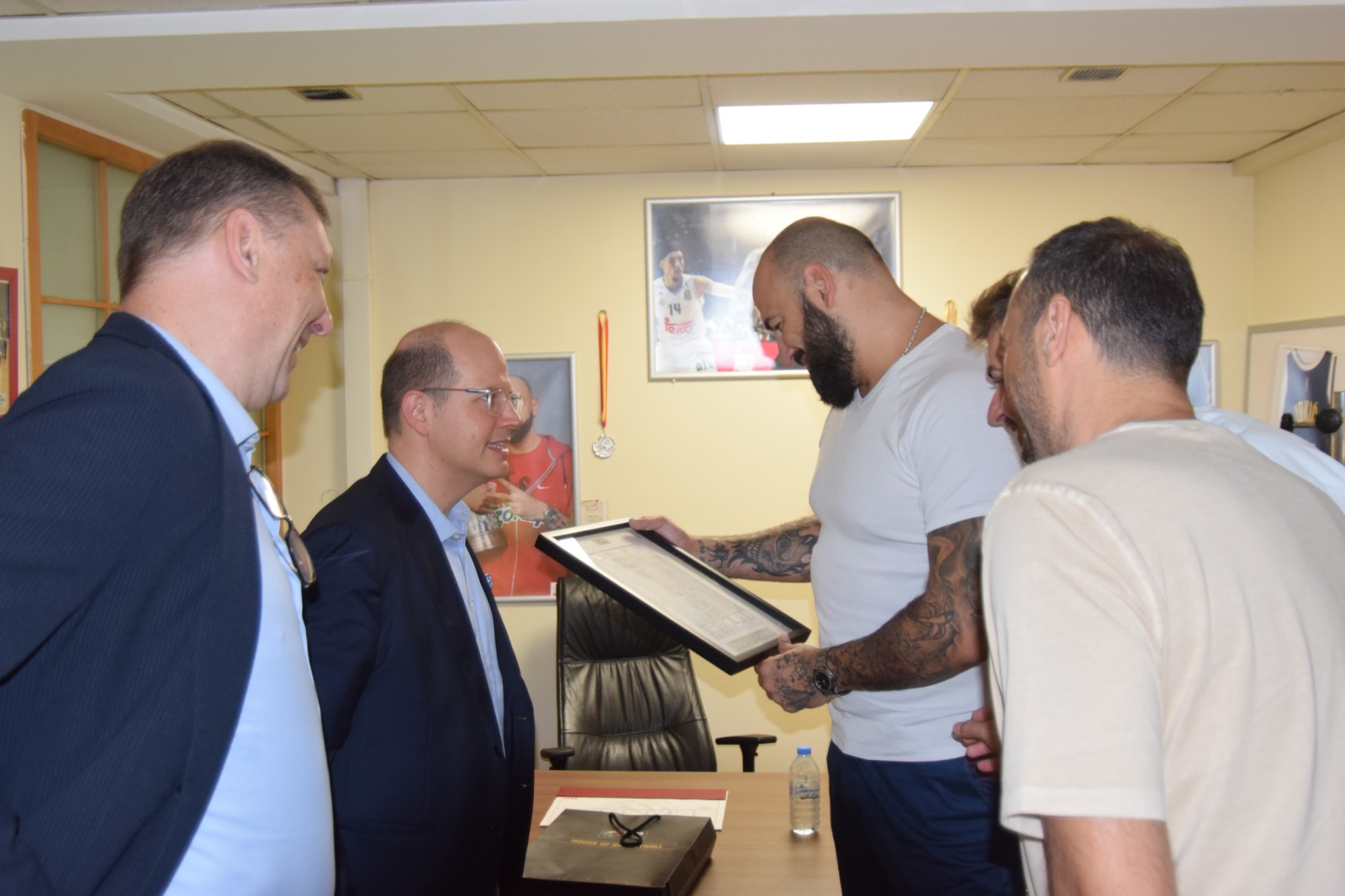 30.08.2024 30.08.2024 Генералниот секретар на ФИБА, Андреас Заглис и неговиот колега од секторот задолжен за националните федерации, Михал Конечни, денес остварија работна посета во канцелариите на Кошаркарската Федерација на КФСМ. Заглис повторно се сретна со Претседателот на КФСМ, Перо Антиќ, Генералниот Секретар Владимир Георгиевски и со Спортскиот Директор Марјан Србиноски. Генералниот секретар на ФИБА ја поздрави успешната организација на КФСМ на двете најголеми континентални младински првенства за ова лето. Се разговараше и за претстојните настани на националните А-селекции како и за новите проекти на КФСМ.