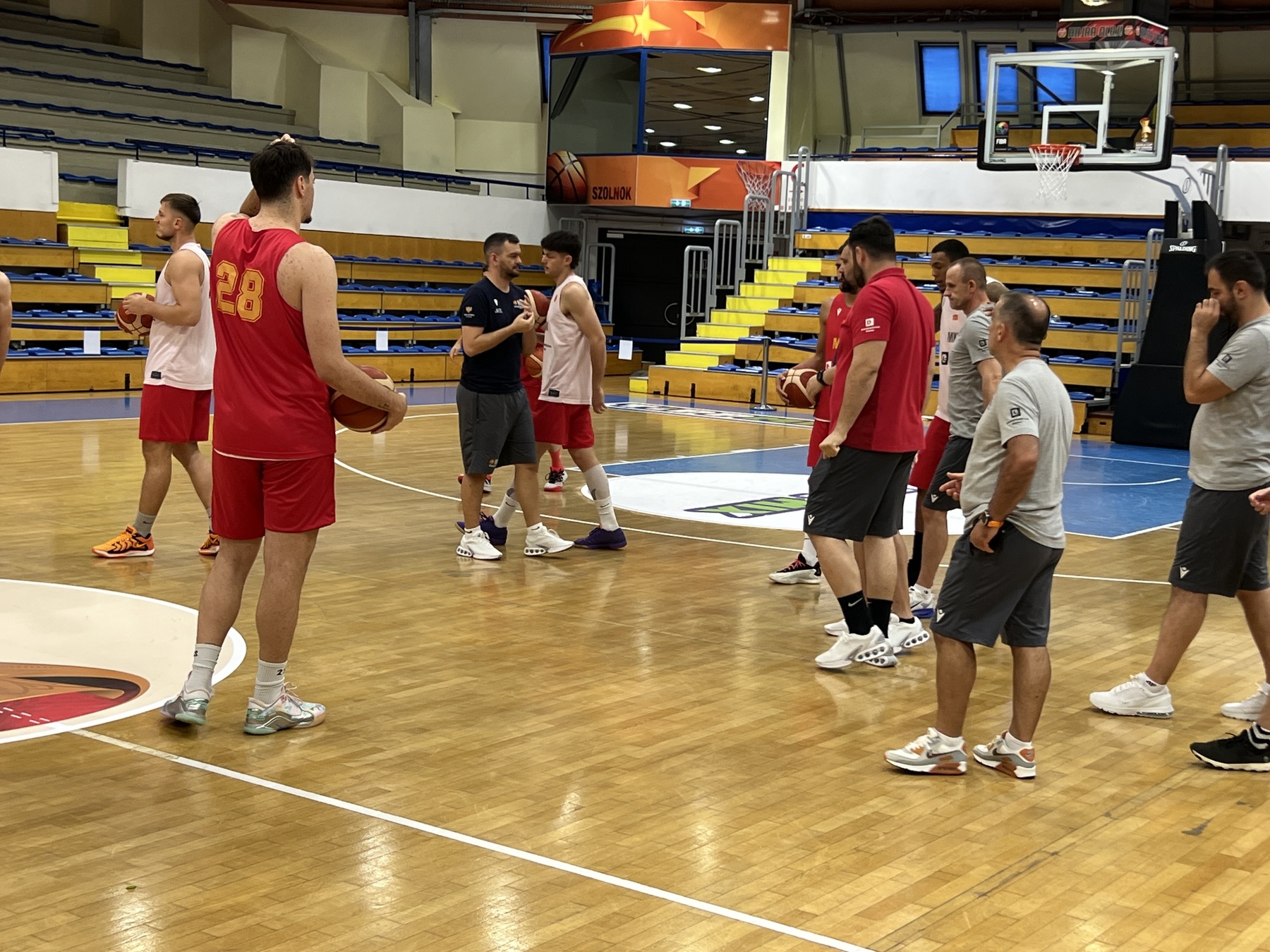 08.08.2025 Согласно со регулативите на ФИБА, „црвено-жолтите“ го одработија првиот тренинг во салата каде утре вечер ќе играат против Унгарија Машката сениорска репрезентација на Македонија вечерва го одработи првиот тренинг во „Тисалигети“ Арената во Солнок, каде утре вечер, во 18.00 часот ќе го одигра вториот натпревар од претквалификациите за Светскиот Куп 2027 година во Катар. Согласно со регулативите на ФИБА, нашите најдбри кошаркари го добија терминот во кој ќе се игра натпреварот, а селекторот Марјан Илиевски и неговите асистенти, одлучија нашиот тим да има уште еден. Ќе биде реализиран на денот на одигрувањето на мечот со Унгарците, во периодот од 10. до 11. часот.