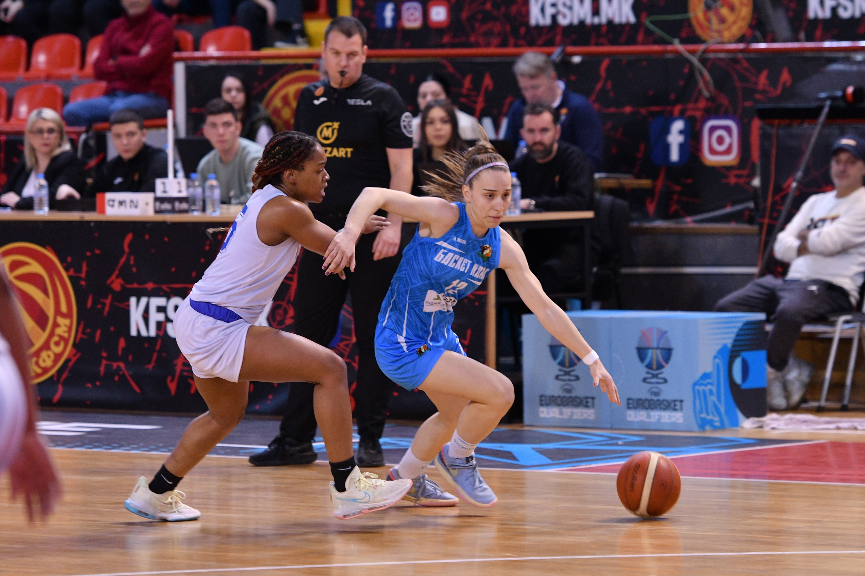 Кметовска и Димова воспоставија доминација во рекетот (заедно 26.поени), па Баскет кам лесно ја оддржуваше високата предност. На влезот во последната минута од првото полувреме, имаа плус 26 (42:16).