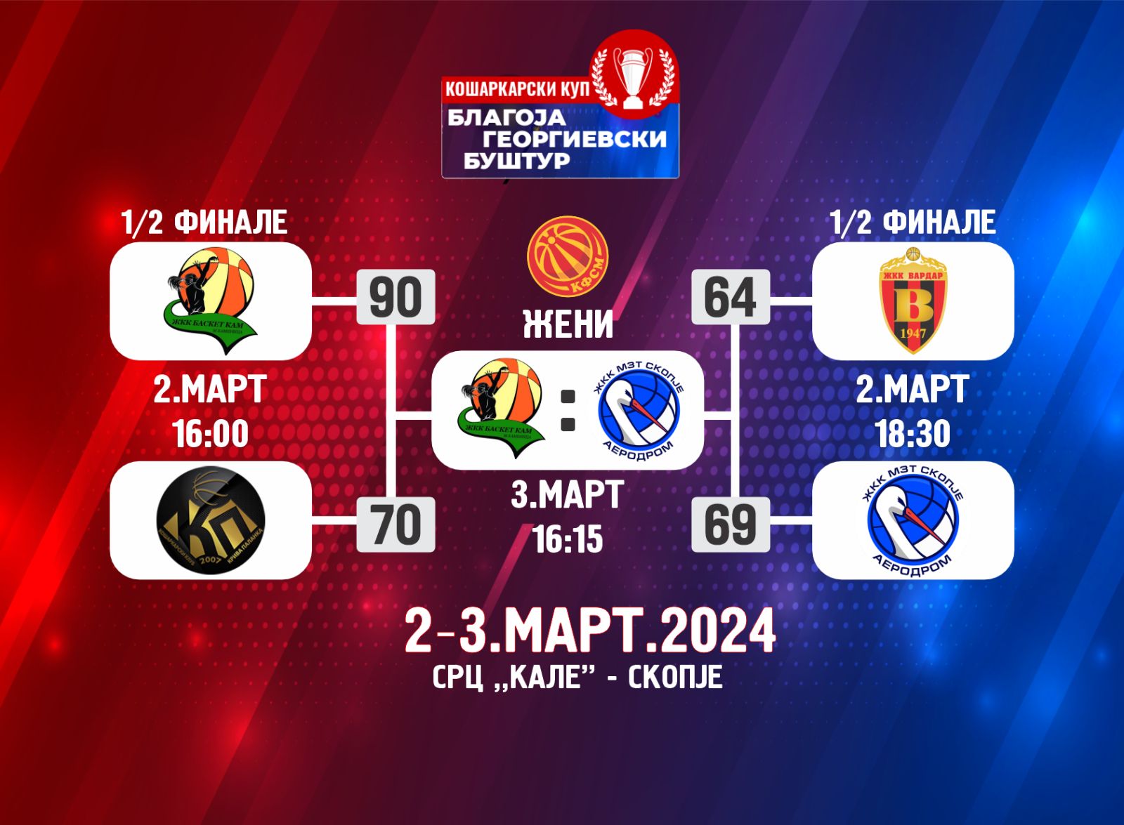 Кој ќе биде освојувачот на Купот „Благоја Георгиевски-Буштур“, ќе одлучат 40. минути во големото финале, кое се игра денеска, со почеток од 16.15 часот во СРЦ „Кале“ во Скопје (директен пренос на МРТ 3).