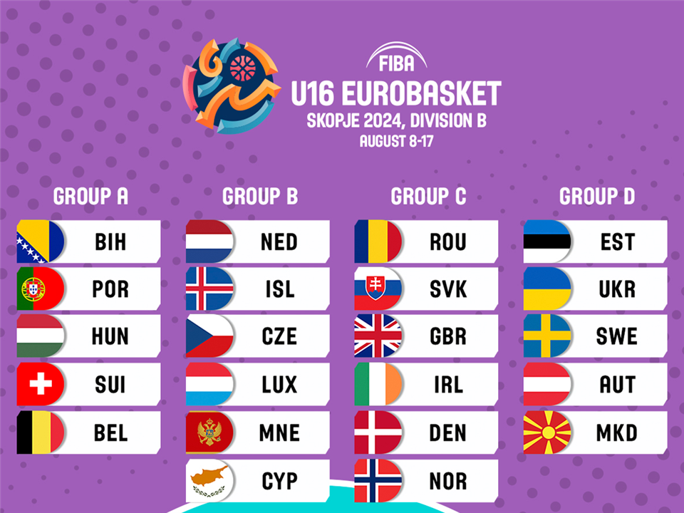 Редоследно, нашата машка селекција „Под 16“ години е поставена во групата „Д“ од ЕП кое ќе се одржи во Скопје во периодот од 8. до 17.август. Заедно со националните тимови на Естонија, Шведска, Украина и Австрија.