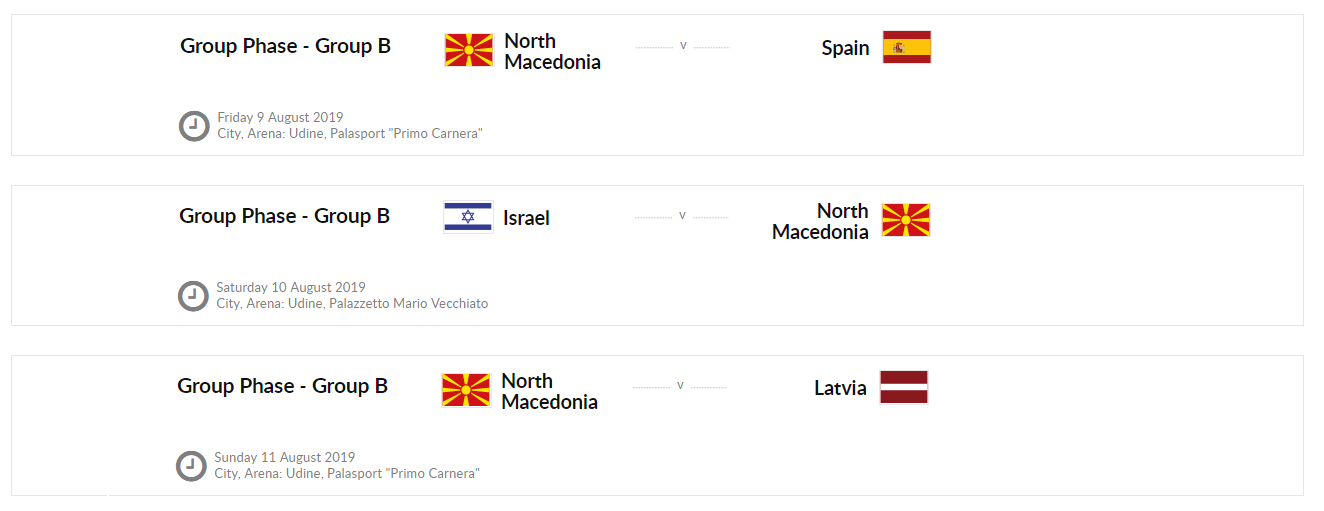 07.08.2019 Ждребот одржан пред неколку месеци посака да нашата кадетска машка репрезентација тековното лето биде дел од групата Б во рамки на првата фаза од Европското првенство за кошаркари до 16 години. Во оваа фаза од натпреварувањето, нашите кадетски репрезентативци ќе разигруваат против соодветните национални селекции на Шпанија, Израел и на Летонија. Најдобрите шеснаесет репрезентации од оваа возрасна категориија ќе се надигруваат на континенталниот собир кој ќе се одржи во Удине, Италија од деветти до седумнаесетти август. Трите најлошо пласирани репрезентации идното лето ќе настапуваат во дивизија Б. Сите натпревари ќе бидат пренесувани во живо на YouTube каналот на ФИБА, а на официјалната веб страница на првенството ќе бидат достапни и линкови од статистика во живо како и фотографии од натпреварите.