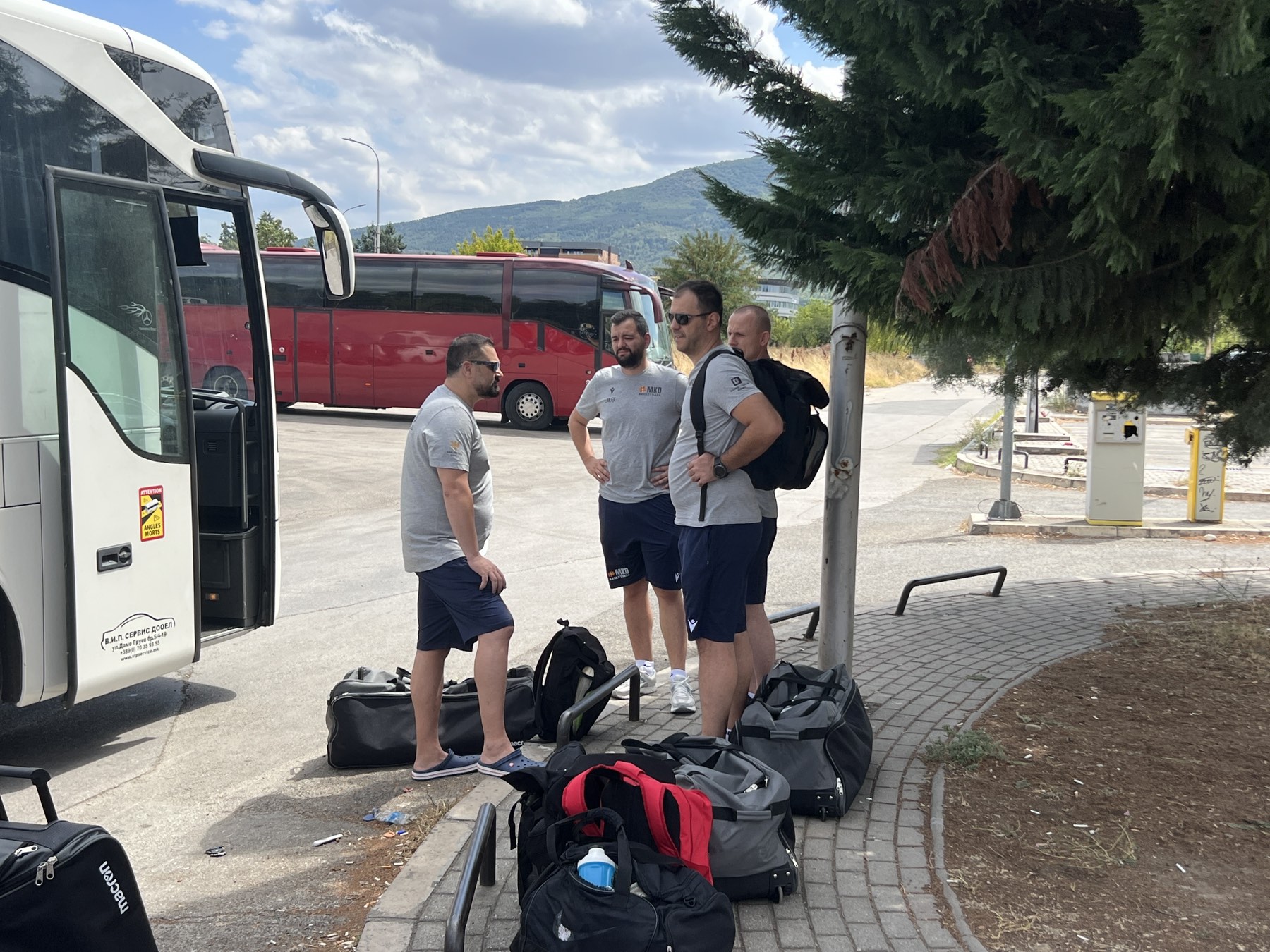 Денеска, на пат за Куманово тргнаа следниве кошаркари кои ќе конкурираат за 12. финални места во ростерот за премиерниот меч во августовскиот ФИБА „прозорец“: