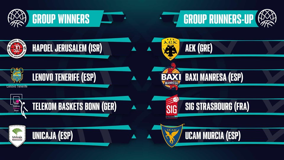 Последниoт круг од ТОП 16 фазата, ги промовира екипите на Телеком Бон, за кој настапува македонскиот репрезентативец Ти-Џеј Шортс, Хапоел Ерусалим, Тенерифе и Уникаха како победници на четирите групи. А воедно и носители пред ждрепката со која ќе се формирата четвртфналните двојки, планирана за 24. март во Минхен.