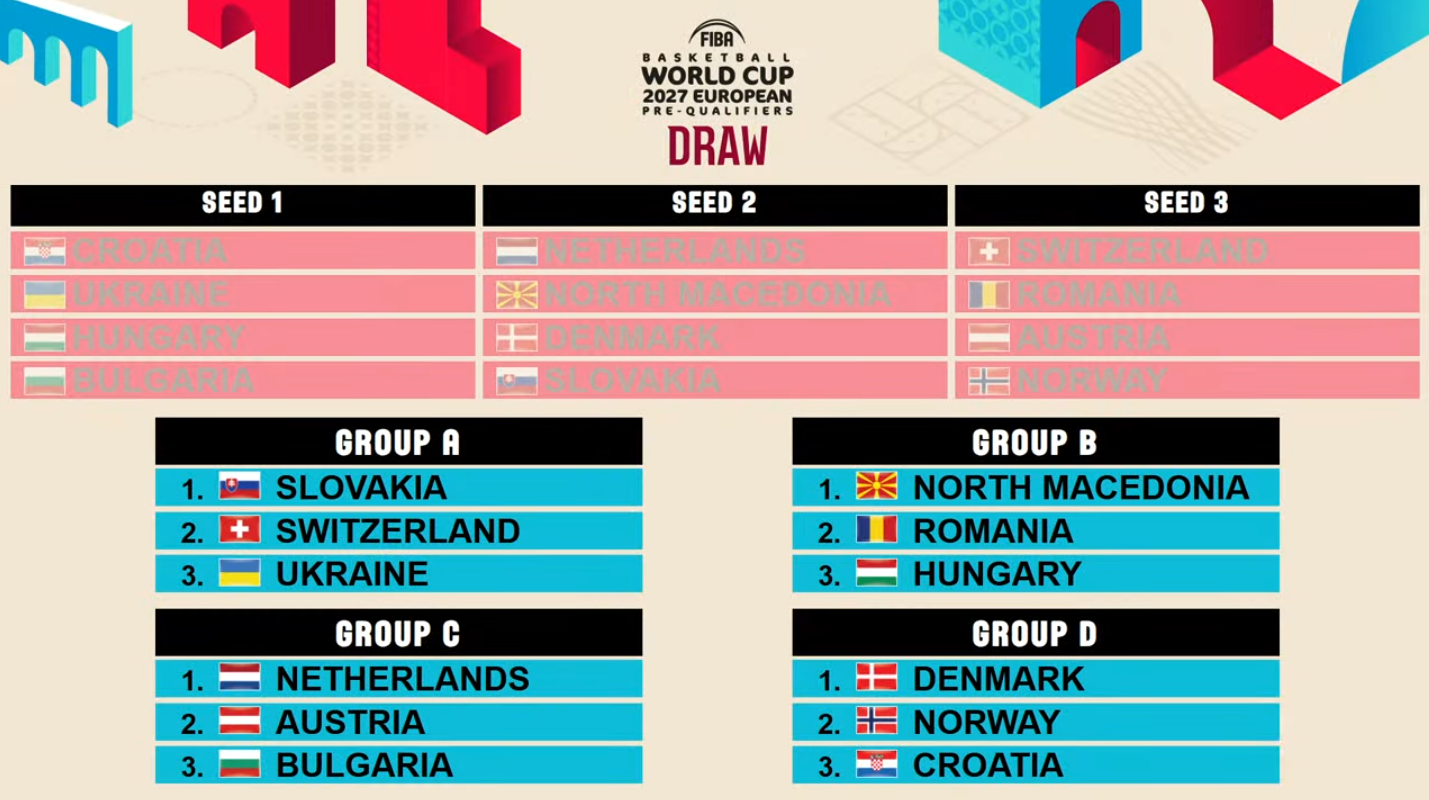 14.03.2025 14.03.2025г. Во седиштето на ФИБА Свет, во „Куќата на кошарката-Патрик Бауман“, денеска се одржа ждребот за втората рунда на претквалификации за Светското првенство, предвидено да се одигра во 2027 година во Катар, согласно распоредот на ФИБА. Ждребот посака нашата машка сениорска репрезентација да ги добие Унгарија и Романија за противници. Сите натпревари во рамки на оваа фаза од претквалификацискиот циклус ќе се одиграат во периодот од 2. до 20. август, 2025 година. Репрезентациите кои ќе се пласираат на првото и на второто место во претквалификациските групи ќе обезбедат пласман во наредната етапа - квалификации за Светското првенство закажано за 2027 година.